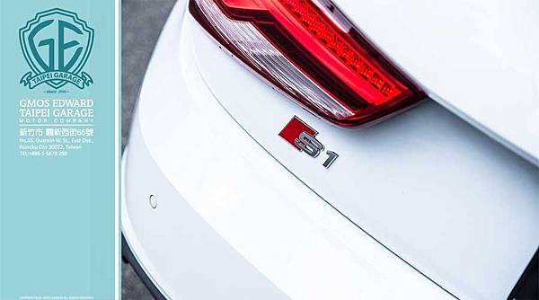 從車尾看去,S1透過專屬造型獨特的後擾流尾翼、後保險桿下分流器、雙邊出高光澤鍍鉻4排氣尾管,和一般奧迪A1 Sportback做出區隔 。
