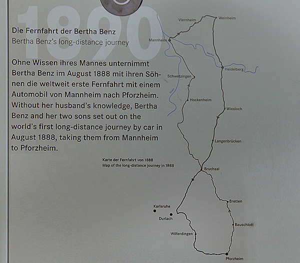 Carl Benz 的夫人實在不願意再看到他為了無法測試而搞得焦頭爛額,所以便毅然決然地與兩位兒子:Eugen 和 Richard 跳上了車