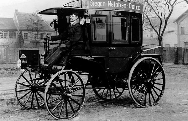上圖為Carl Benz 在1985年3月所開發的 Benz motorized bus。