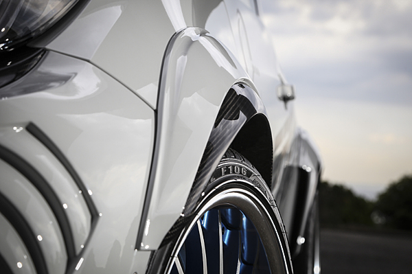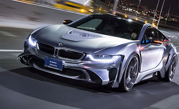 這輛Evo的BMW i8,有著相當傑出的外觀。首先車頭部分,就像之前所推出的i3一樣,同樣有著凹凸有致的線條,配上外擴的葉子板爆龜,誇張外型就像從動畫裡跑出來的一樣,車側部分可以明顯看出線條從側裙上拉與後葉子板暴龜連接,肌肉感十分明顯,另外,車尾左右邊加了有如提把般的尾翼,下方也增加了有如定風翼造型的擾流板,加上由P.G.D.所操刀的消光鍍鉻車身貼膜,整體感覺非常科幻。底盤部分改裝21吋BBS鍛造鋁圈搭配Pirelli P Zero輪胎。