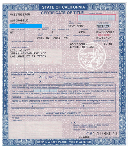 上圖為吳小姐委託GE台北車庫美國代辦進口的benz GLC 300 coupe美國車主證 Title