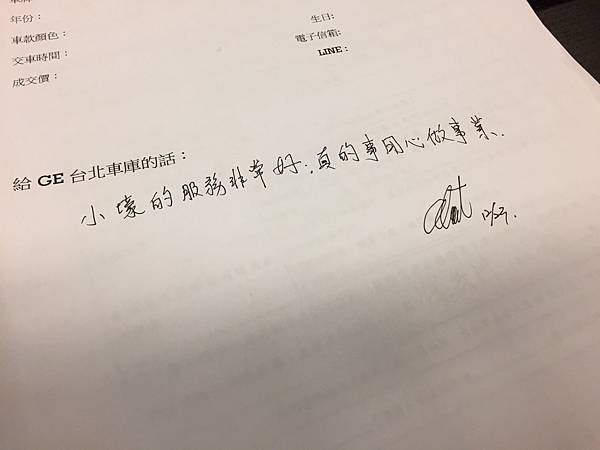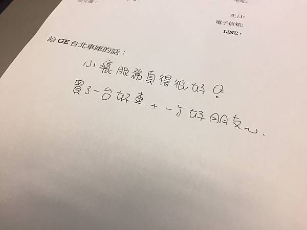 感謝賴大哥還推薦朋友來GE台北車庫! 賴大哥也說他不會隨便推薦商家,能夠得到賴大哥推薦真的責任非常大阿。