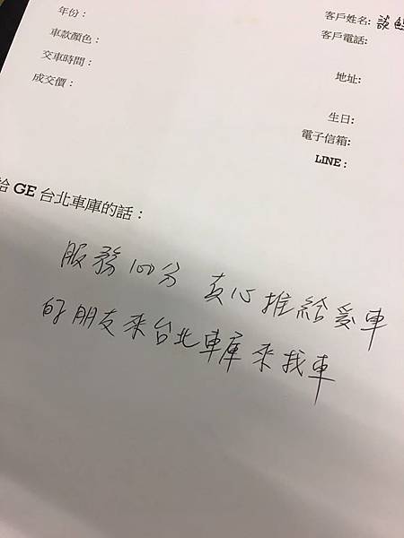 謝謝新竹劉大哥對GE台北車庫評價及支持,逐步邁向台灣外匯車商第一名也是GE台北車庫對自己的期許及要求!!