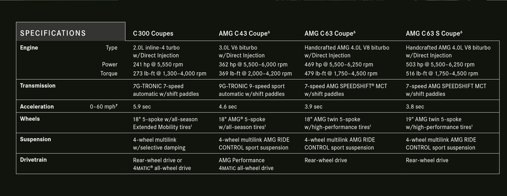 車型分為C300 後驅與四驅版本、C43、C63、C63S
