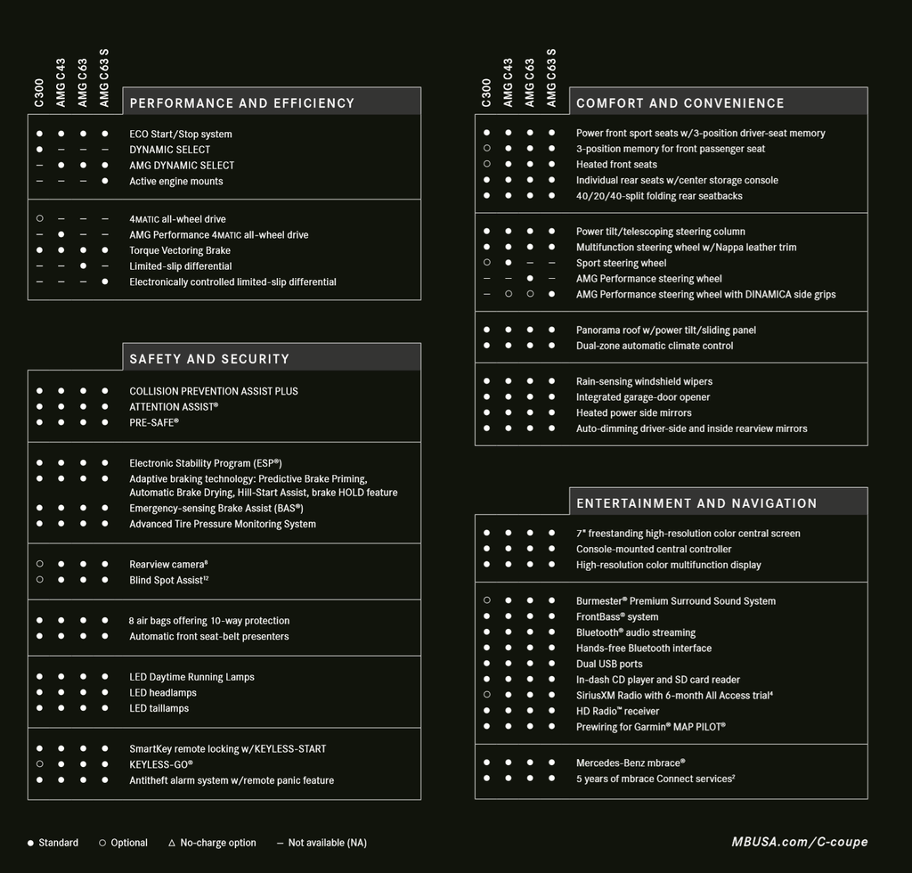 C300 Coupe 如果要四驅、盲點、keyless-go、後視鏡頭、乘客記憶座椅、前排加熱座椅、AMG配件、柏林之音需要另外選~