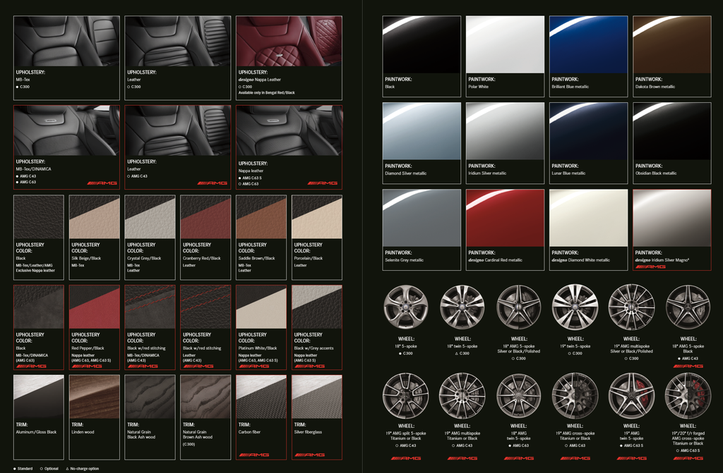 還有空氣懸吊、停車輔助套件、AMG套件及夜色、至於碳纖維外觀套件C43以上才能選了~