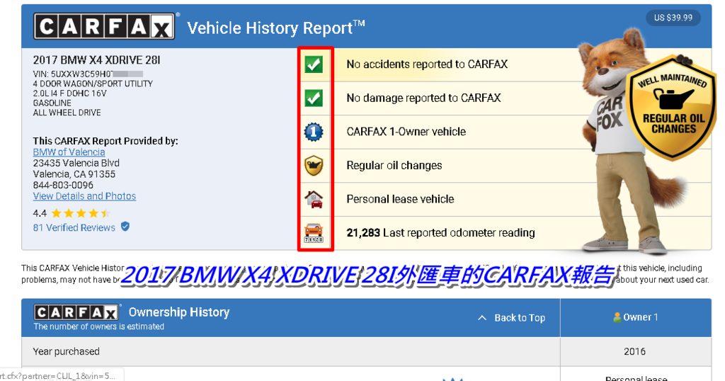因這兩份報告從車子出廠,所在地,行使里程數,維修記錄,有無事故,有幾任車主等等